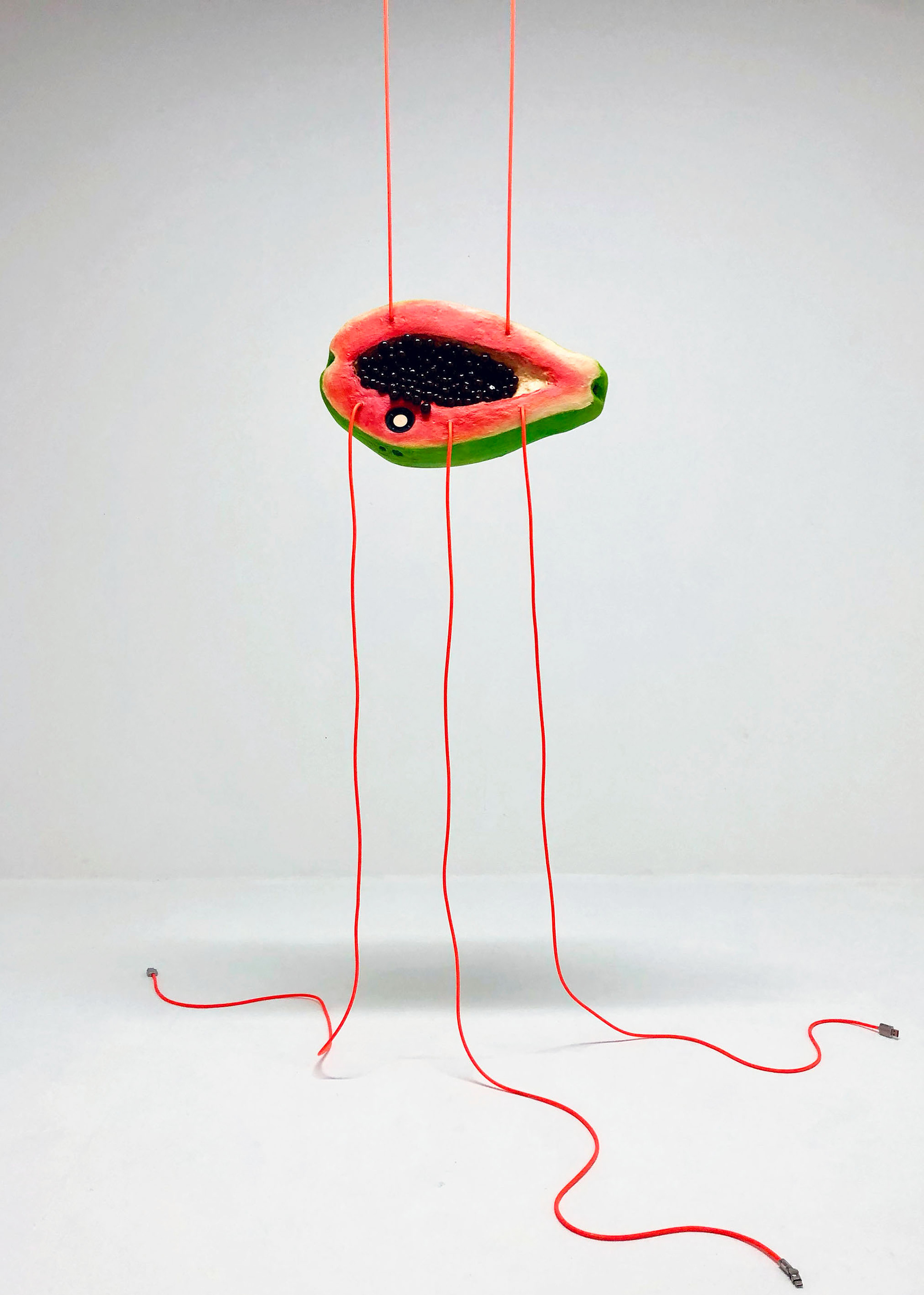 2025 Polystyrene, Jesmonite, silicone wires, speaker, air-drying clay, paint, resin, varnish 28 × 47 × 18 cm (sculptural element); installation dimentions variable